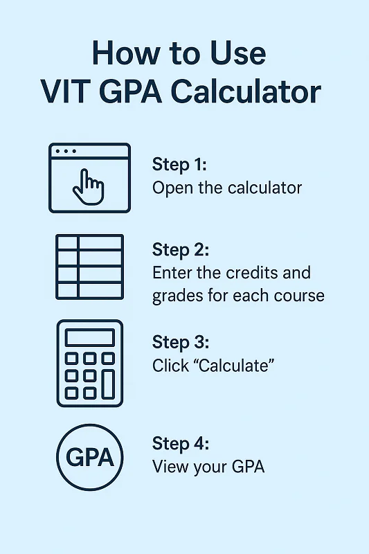Calculating your GPA shouldn’t be a headache. Our VIT GPA Calculator simplifies the entire process, helping you stay on top of your academic performance.